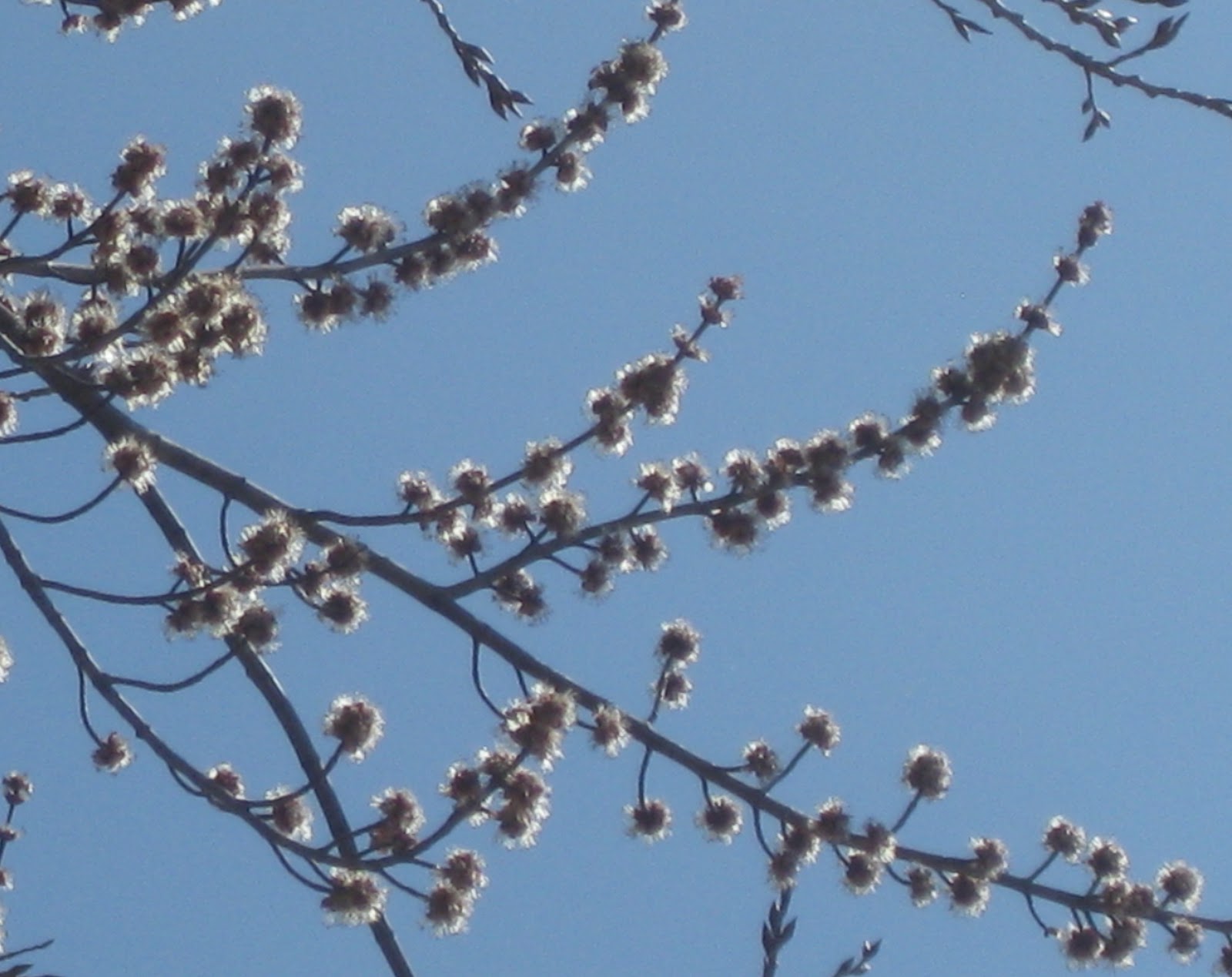 When I walked by the Hudson River yesterday, I noticed two kinds of trees. One had fuzzy buds and smooth bark.